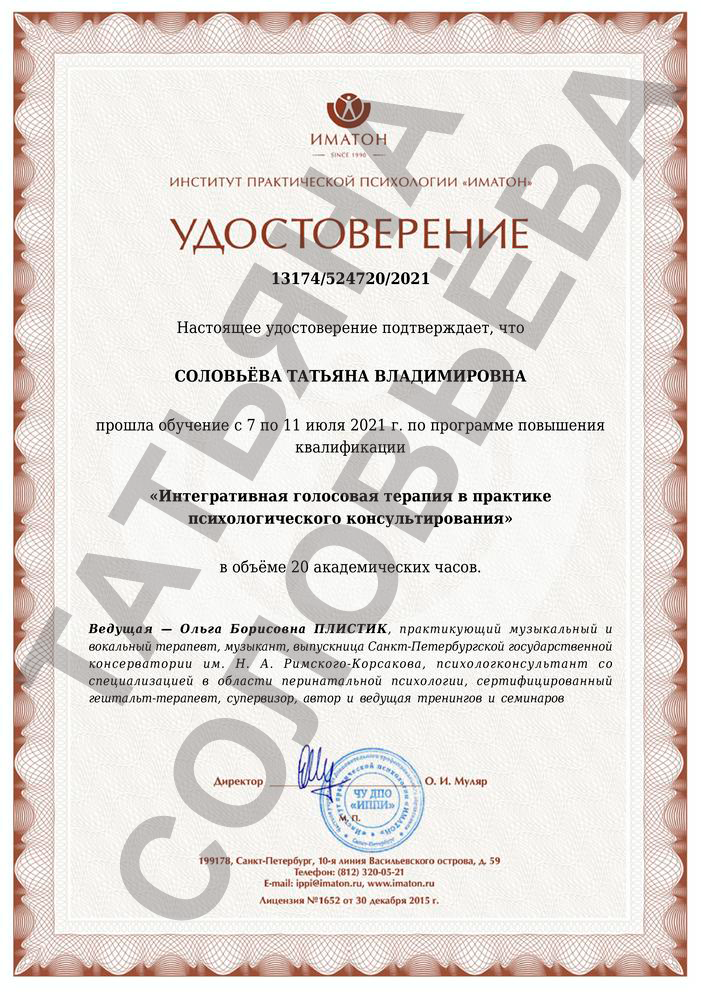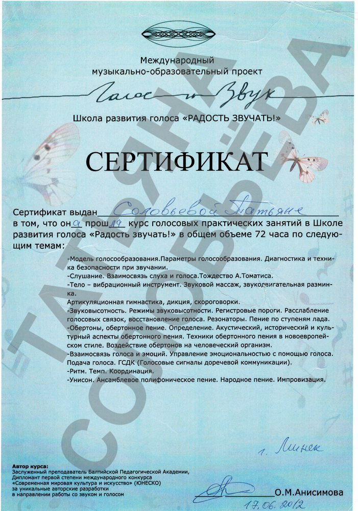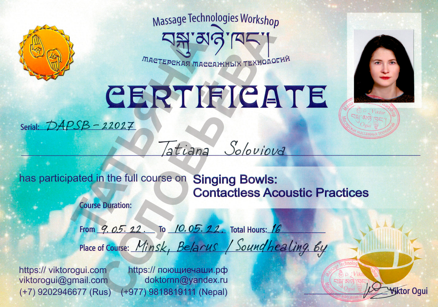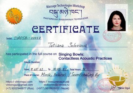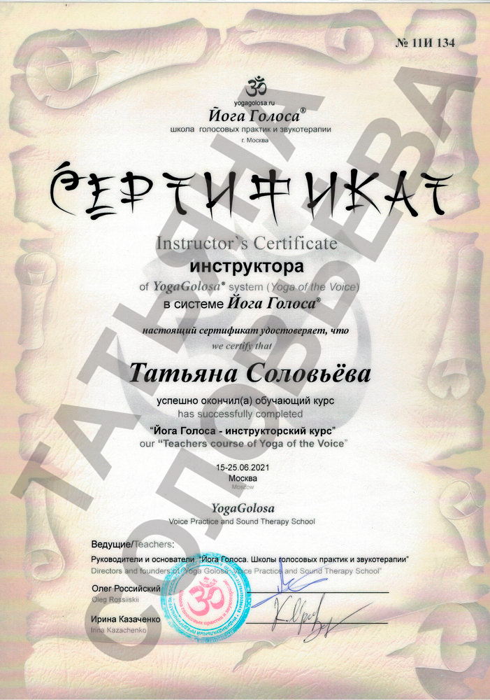 инструктор Йоги голоса – инструктор в системе «Йога голоса» – ведущая регулярных «живых» и онлайн групп по голосовым практикам – сертифицированный звукотерапевт, специалист по массажу поющими чашами • высшее образование по специальности «психология», а также: – прошла обучение по программе «Интегративная голосовая терапия в практике психологического консультирования» – прошла обучение по программе «Возрождение природного голоса» – прошла обучение в Школе развития голоса «Радость звучать!» • музыкант, композитор, вокалист с большой сценической практикой |