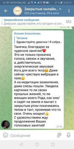 Йога Голоса – это НЕ традиционные занятия вокалом или постановкой голоса. Вы можете участвовать, не имея предварительной подготовки, музыкального образования или абсолютного слуха! Все, что Вам понадобится – это желание погрузиться в процесс и готовность делать то, что, возможно, покажется необычным. Во время занятия мы будем разминать речевой аппарат, разогревать тело, прорабатывать зажимы и блоки. Будем мягко и постепенно снимать ограничения со своего звучания. |