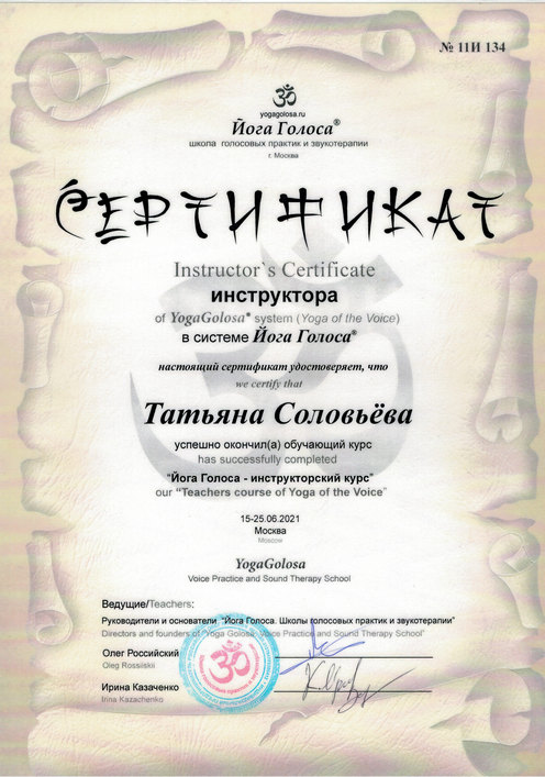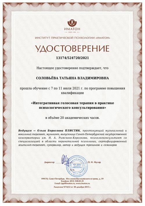 – прошла обучение по программе «Интегративная голосовая терапия в практике психологического консультирования»