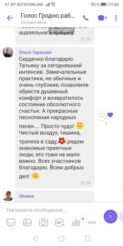 Уже два года как работает наша группа Йоги голоса. Жизнь течет, у каждого свои дела, поэтому бывает, кто-то приходит в радостном предвкушении приятной работы, а кто-то в раздражении, печали, бессилии. И я давно заметила, что в каком бы состоянии ни приходили люди на занятие, по окончании все они чувствуют себя более счастливыми и спокойными. Я как ведущая – точно такой же человек, точно так же прохожу через разные эмоции, и много раз на себе испытывала это маленькое чудо: как бы тебе ни было плохо, после занятия тебе гораздо лучше! Голос – поистине великий целитель, который всегда с нами и точно знает, что каждому из нас нужно в данный момент.